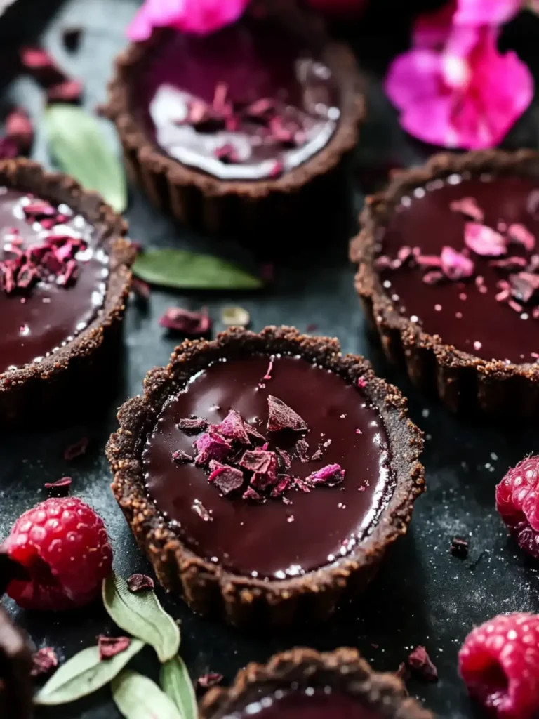 Raspberry Hibiscus Chocolate Tarts: Decadent & Vegan Delight