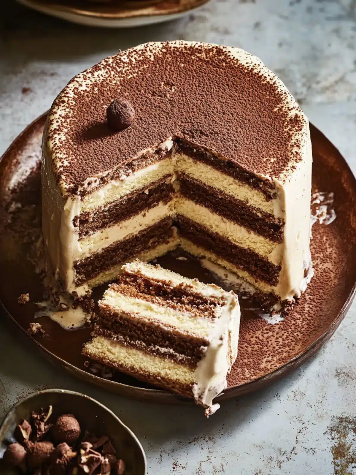 Chocolate Cake Base: Swap ladyfingers for layers of chocolate cake for deep, chocolatey goodness in every bite.