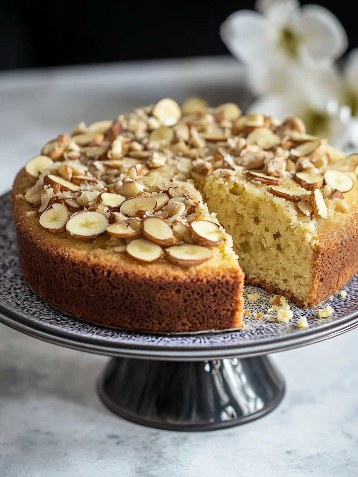 Unfortunately, this cake includes almond flour and sliced almonds, making it unsuitable for individuals with nut allergies. If you’re looking for a nut-free alternative, you could try substituting almond flour with sunflower seed flour or a gluten-free flour blend, but note that the flavor and texture will change!