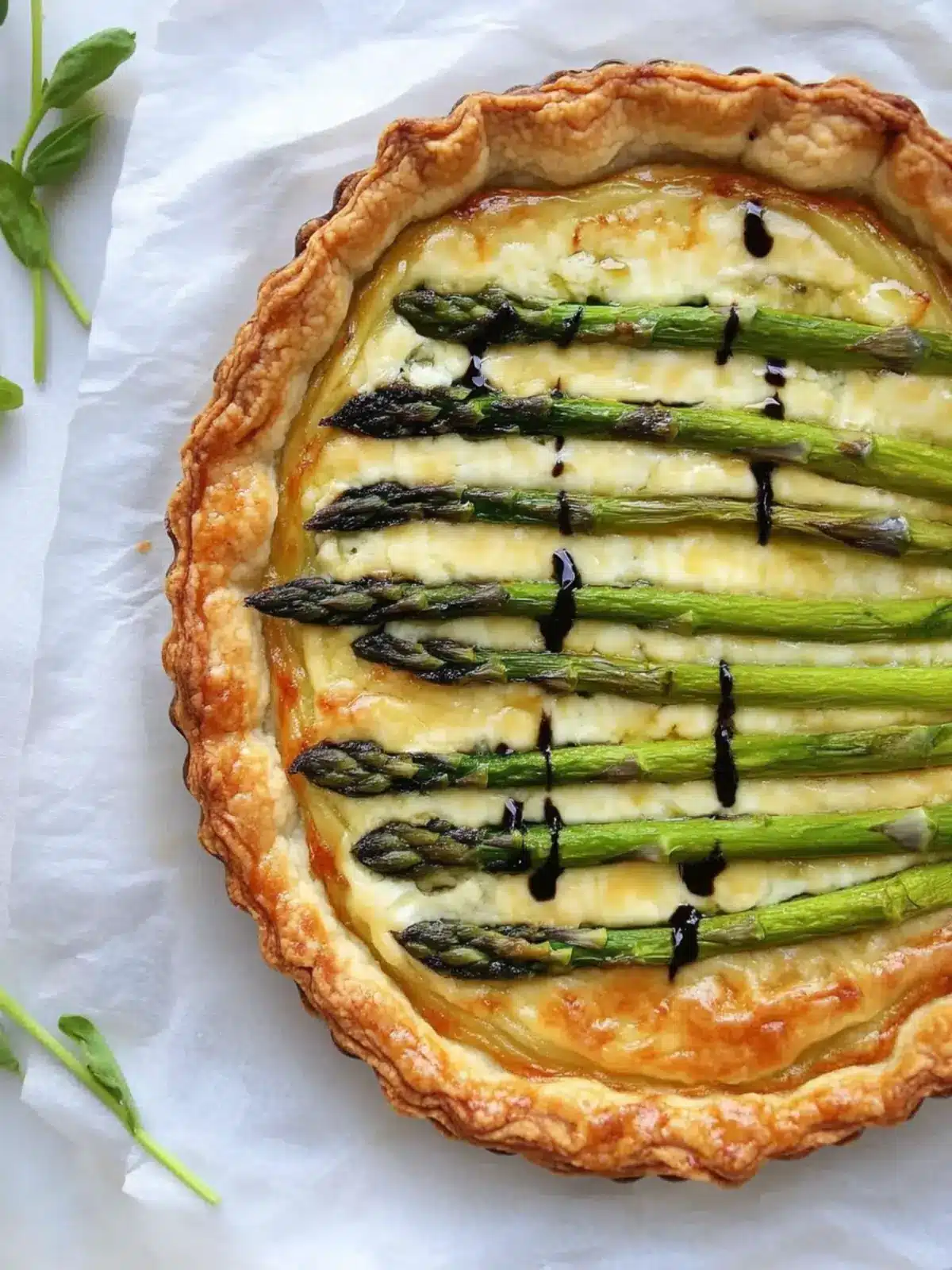 Deliciously unique: The Asparagus Gruyere Tart combines fresh ingredients with a flavorful puff pastry base for an unforgettable taste.