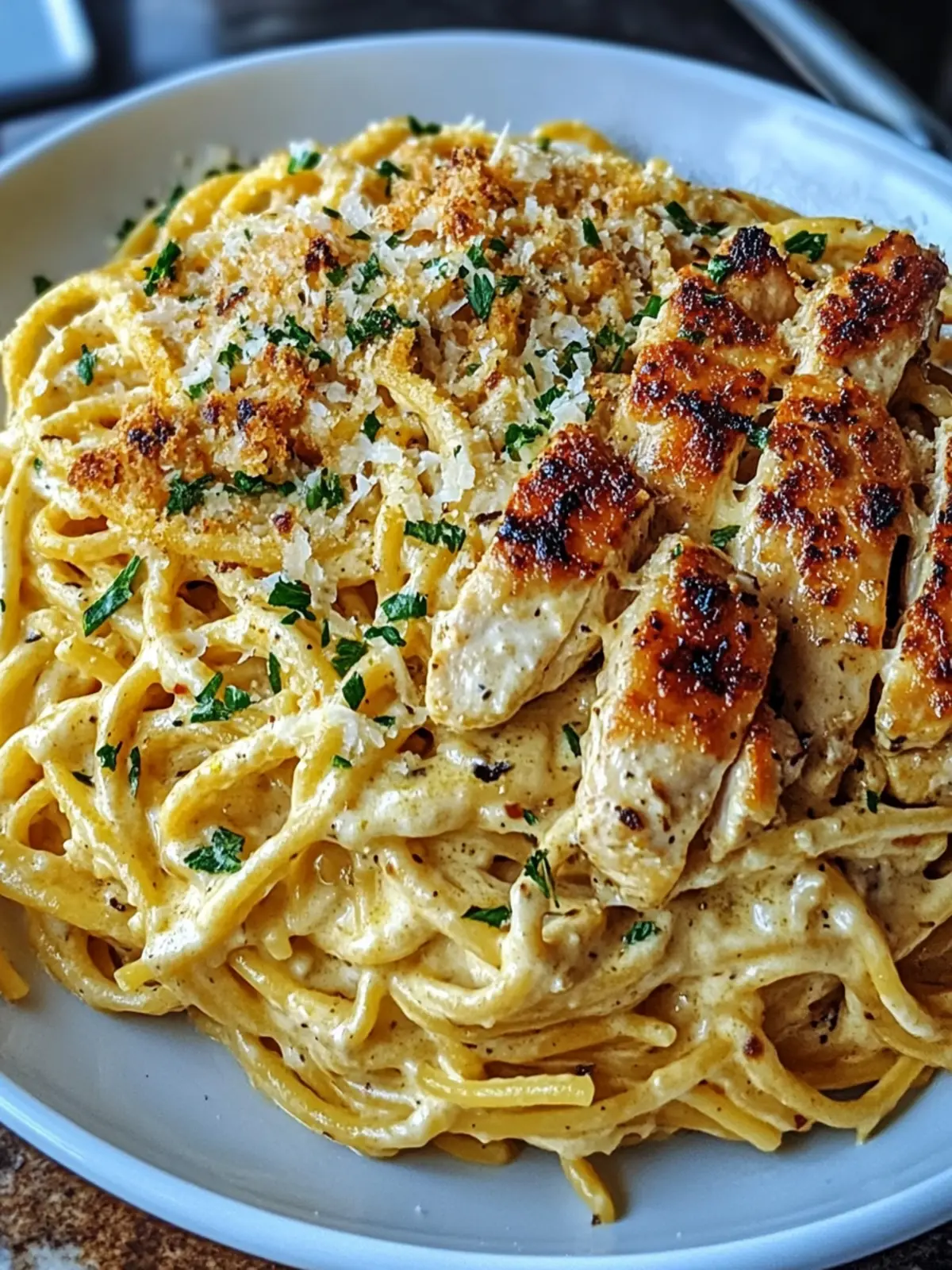 Three-Cheese Chicken Spaghetti in Garlic Parmesan Cream Delight