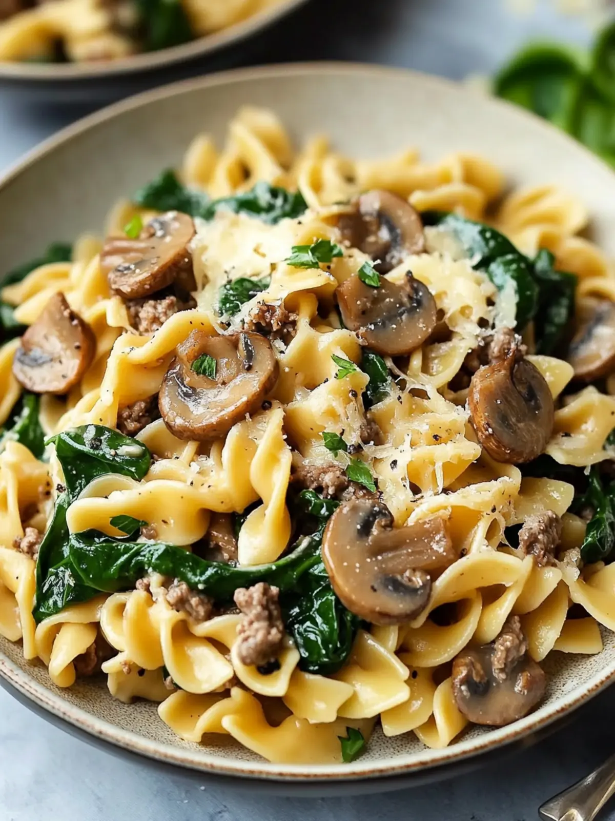 Get ready to enjoy a delightful meal with this Cheesy Mushroom Spinach Beef Pasta that brings joy to every dinner table!