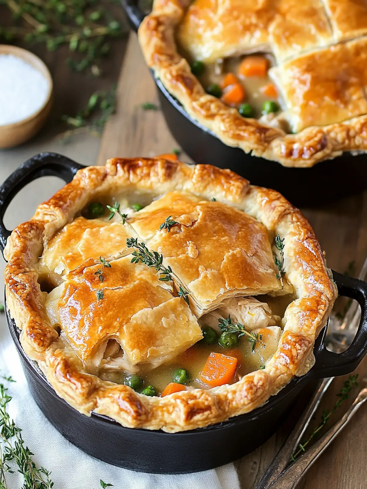 Rest Before Serving: Let the pot pie rest for 5 minutes after baking to cool slightly and allow the filling to settle, preventing burns when serving.