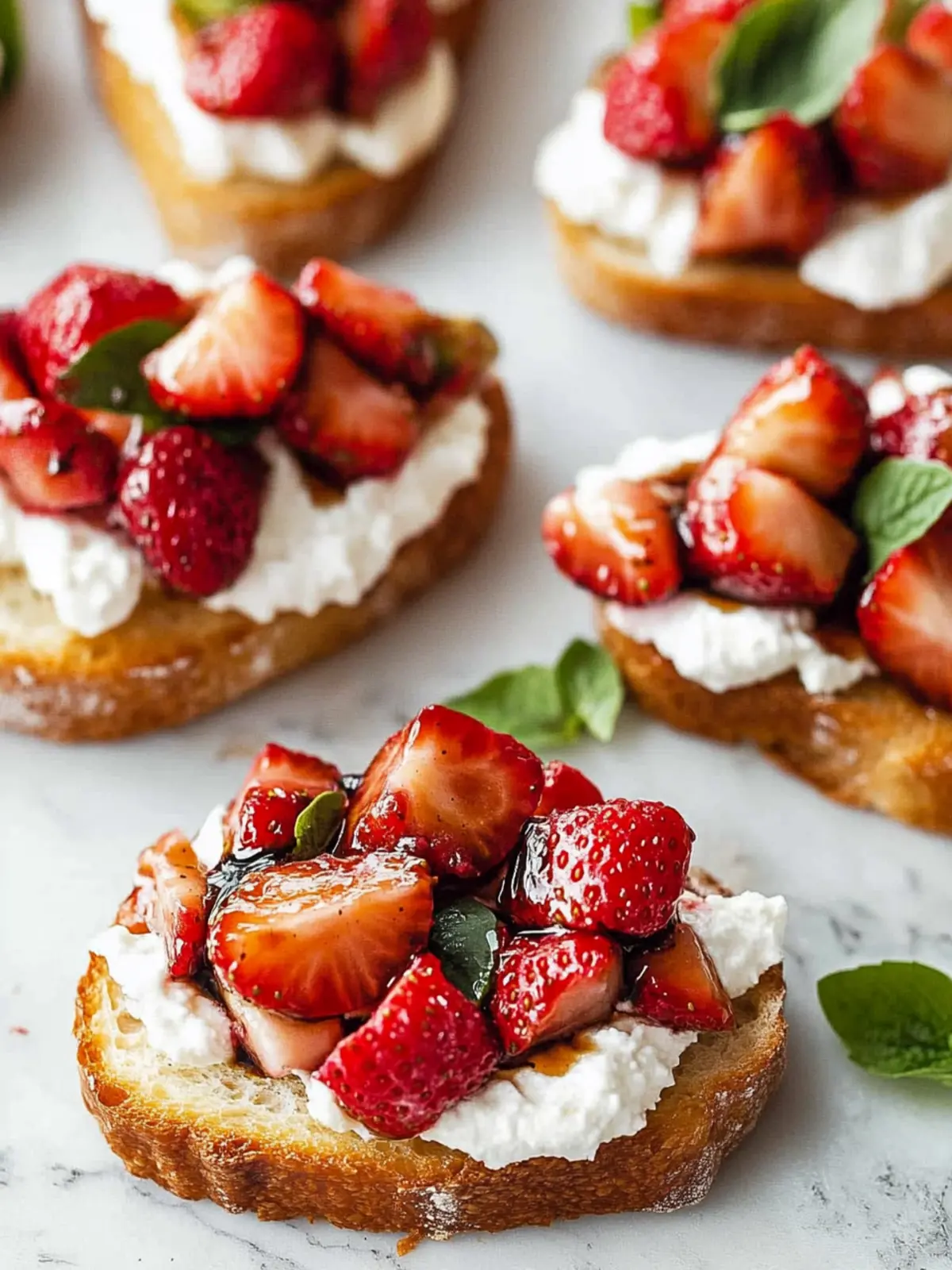 Elegant Presentation: Each bite is a visual delight, featuring vibrant strawberries atop creamy ricotta.