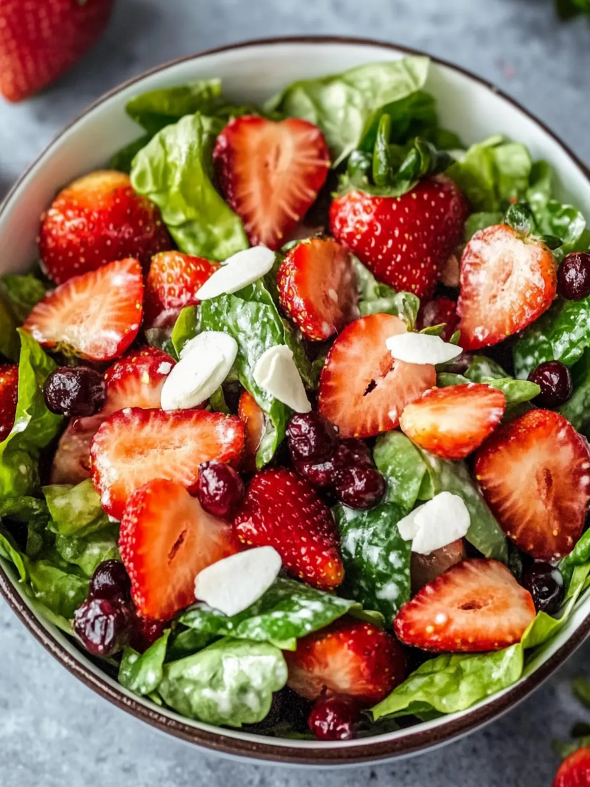 Fresh, Vibrant Ingredients: The mix of strawberries and spring greens creates a palette that’s as beautiful as it is delicious.