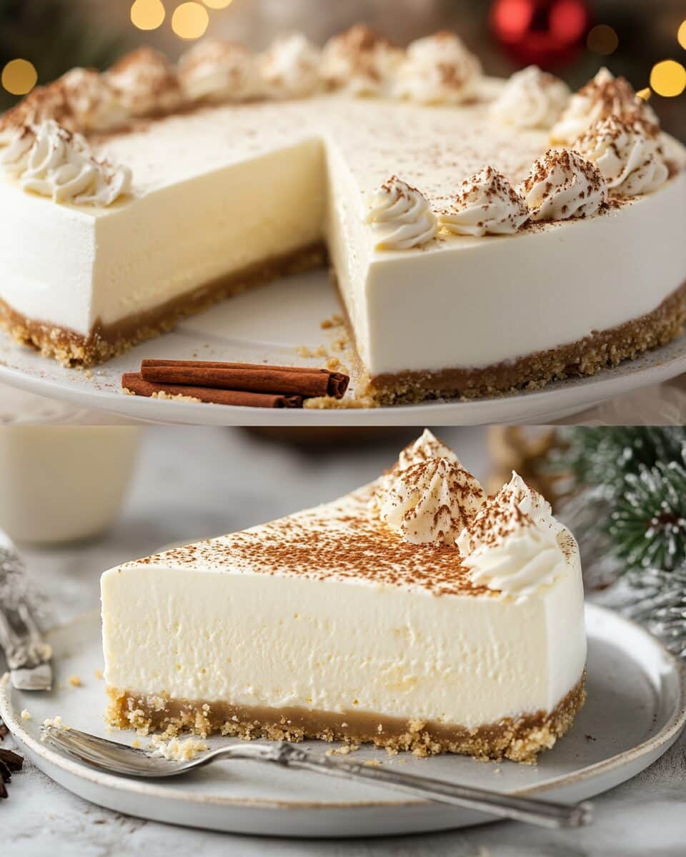 Whether you’re sharing it with loved ones at a festive dinner or enjoying a quiet slice by the fire, Eggnog Cheesecake is bound to leave a lasting impression. Make it the centerpiece of your holiday dessert table and let its nostalgic flavors fill your home with warmth and joy.