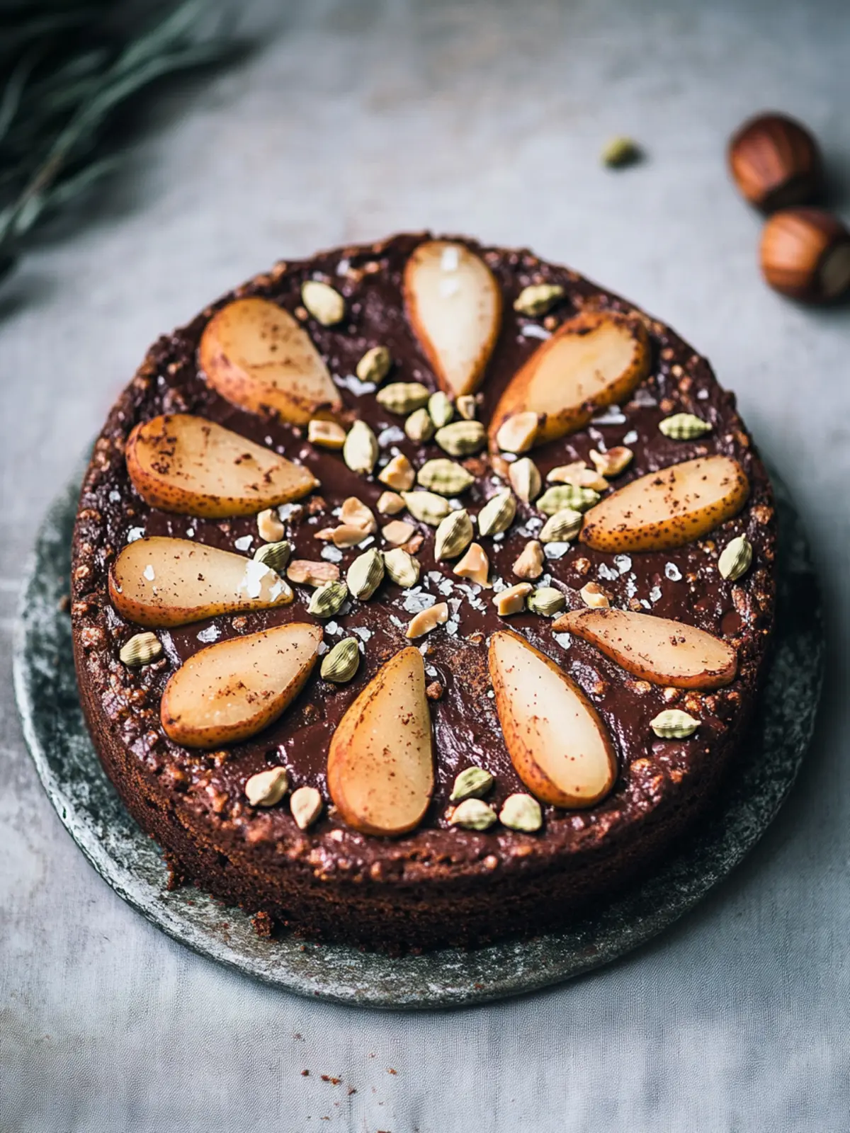 Indulgence, without the guilt! This cake is a celebration of flavors, blending rich chocolate with aromatic cardamom and fresh pears for a unique dessert experience.