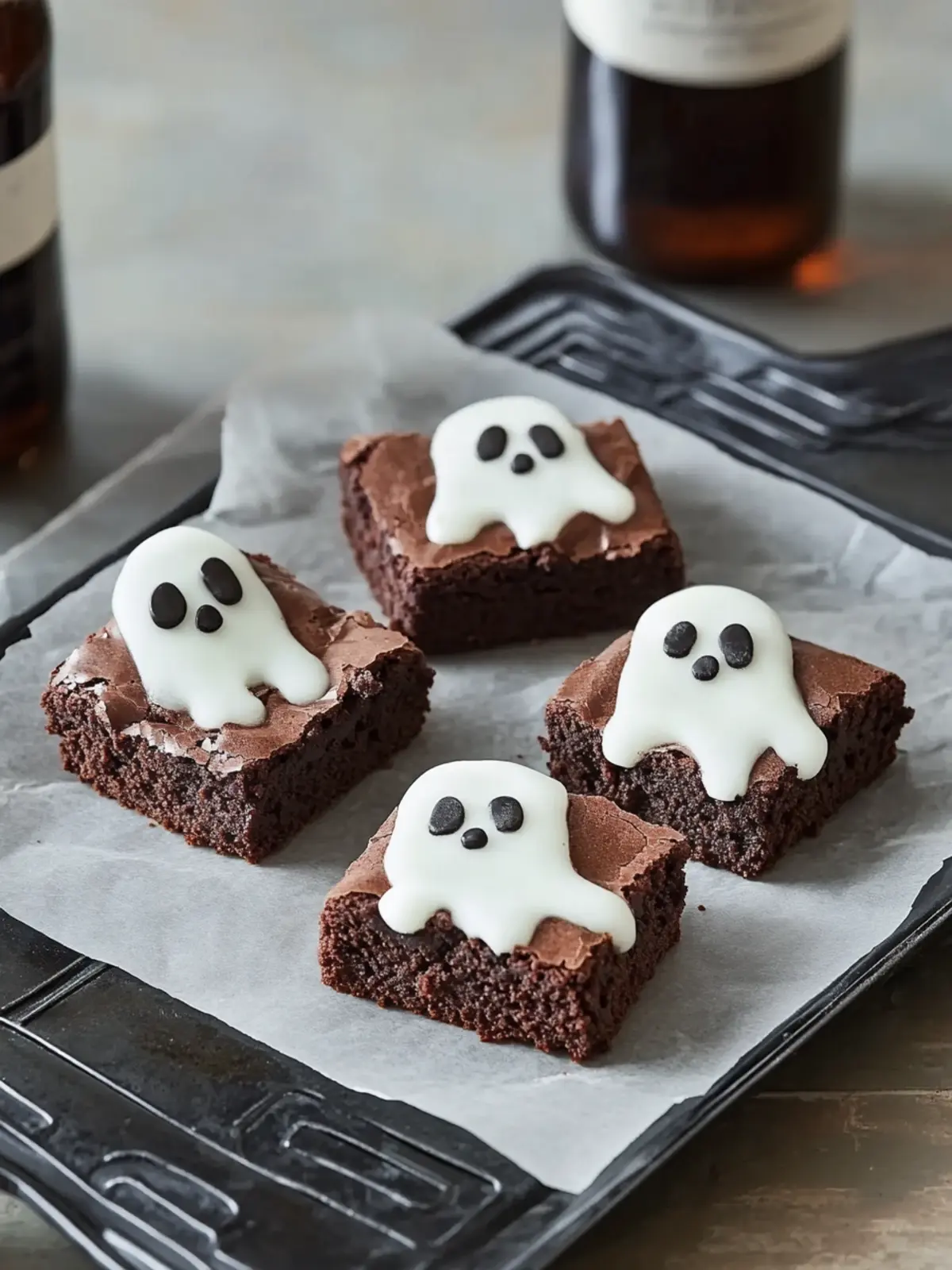 • Perfect Cuts: Use a clean, sharp knife to cut brownies into equal squares, ensuring each ghost sits evenly on the base for a polished look.