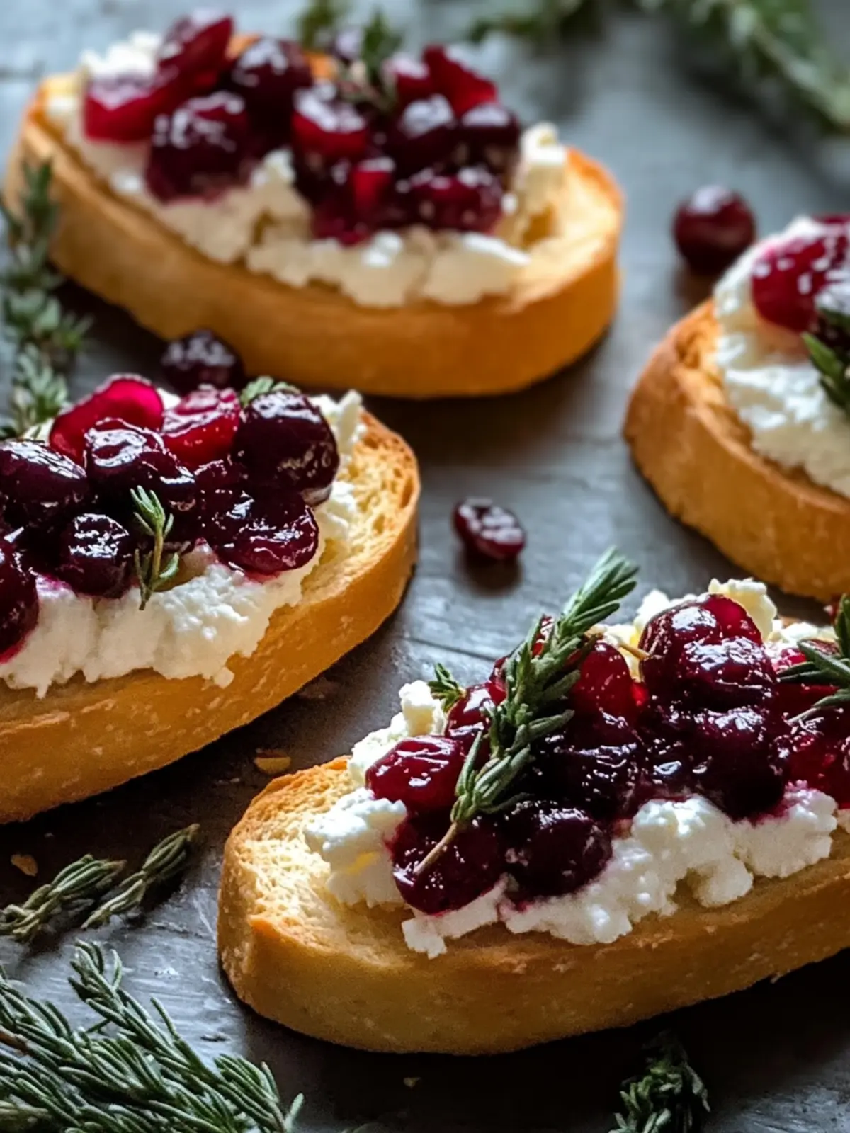 - Assemble the crostini by spreading whipped feta on toasted crostini and topping with cranberry mixture.