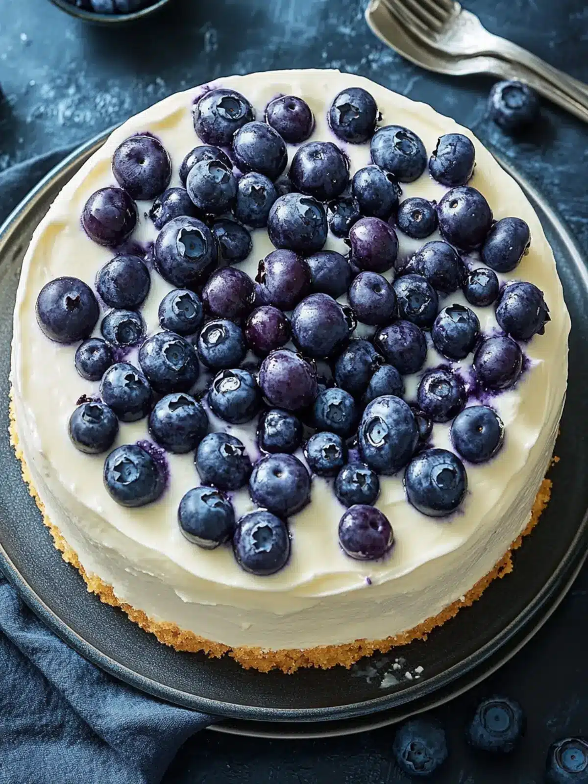 Add Blueberries: Scatter the fresh (or frozen) blueberries evenly over the prepared crust. Their vibrant color and juicy sweetness will be central to the cake’s delightful flavor!