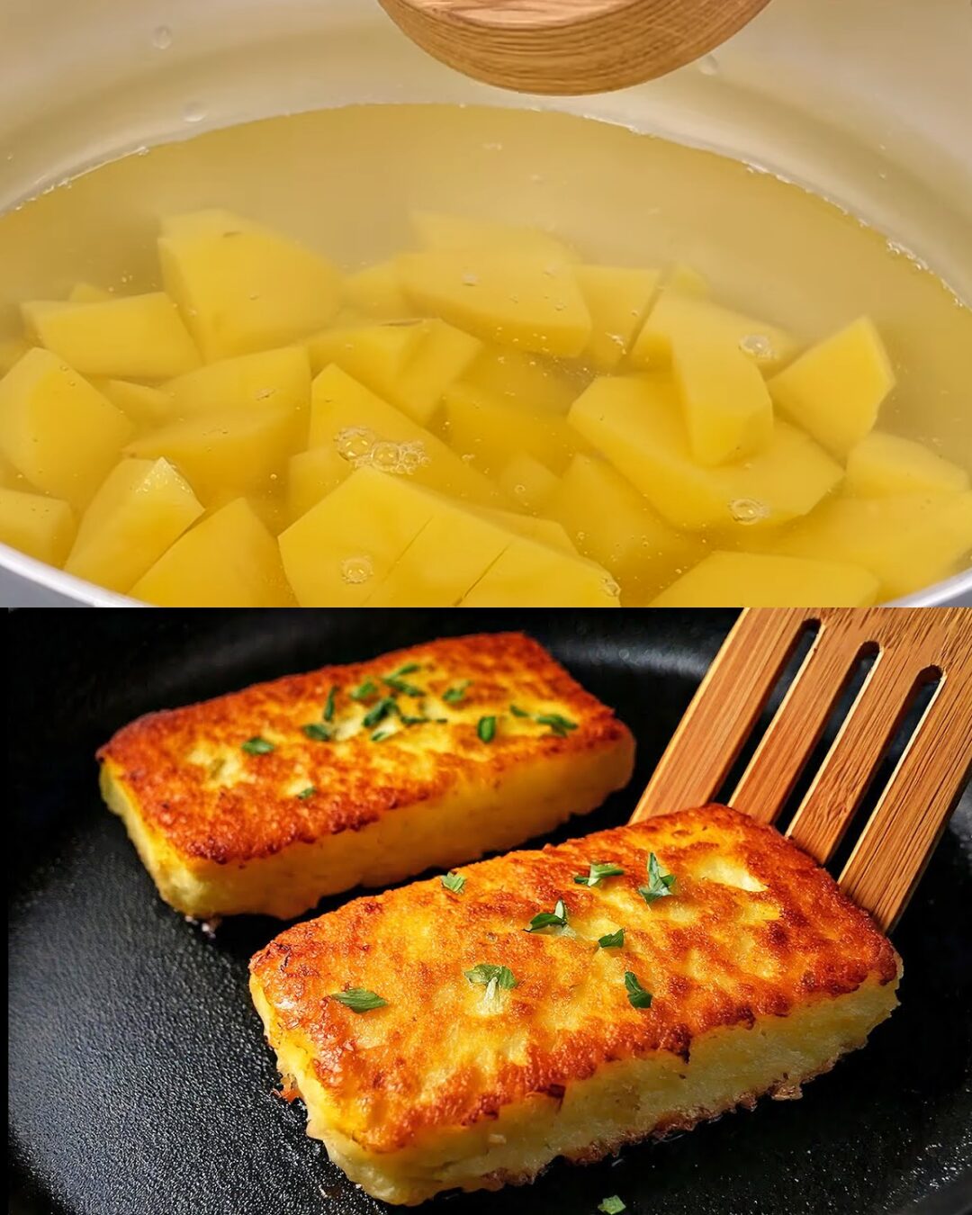 Boil the sliced potatoes in salted water for about 10 minutes until slightly tender. Drain and set aside.