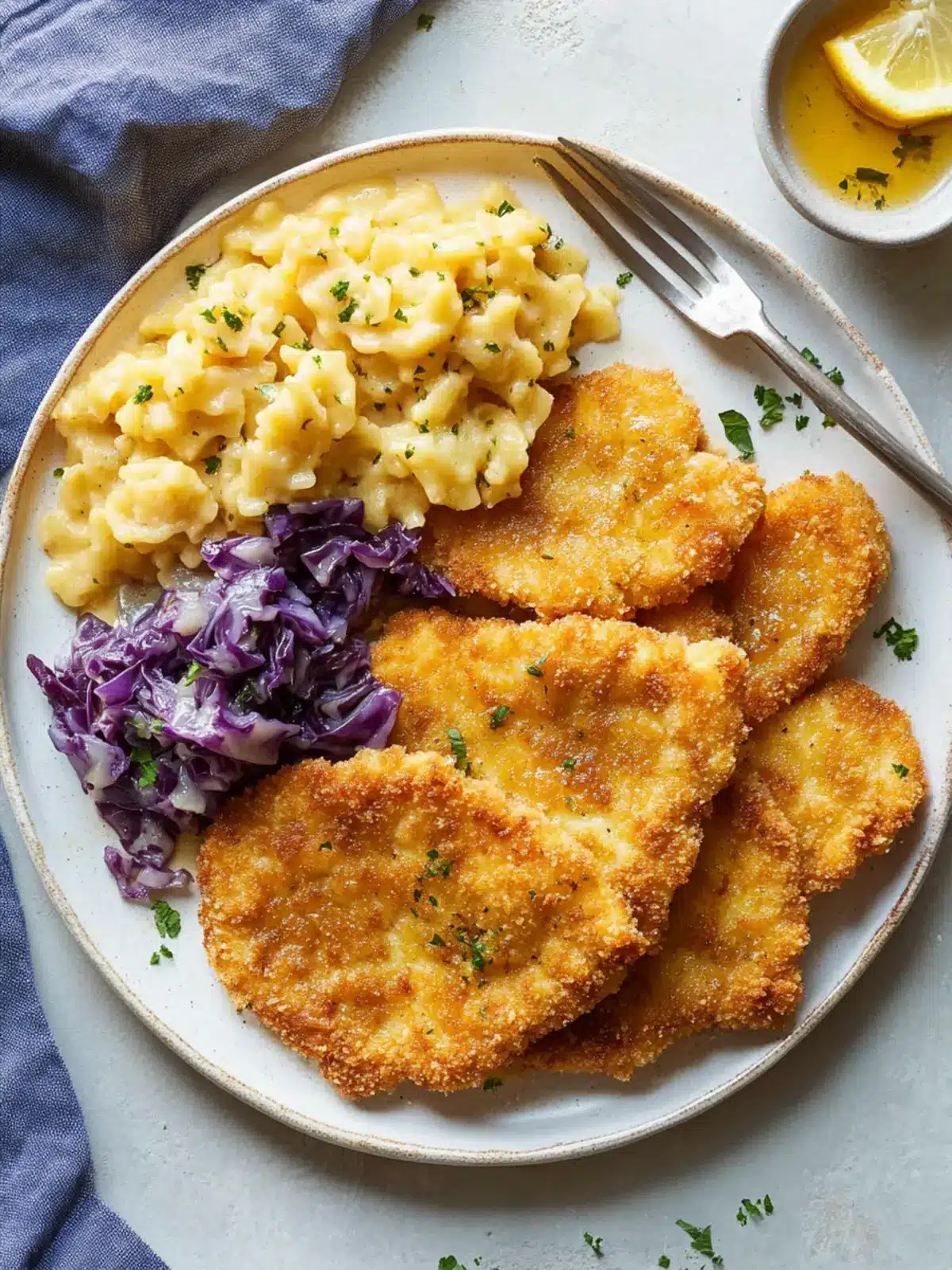 Make-Ahead Tips: Prepare components, such as the sweet and sour cabbage and schnitzel, a day in advance for a quick assembly dinner. Simply reheat before serving to maintain that comforting schnitzel experience!