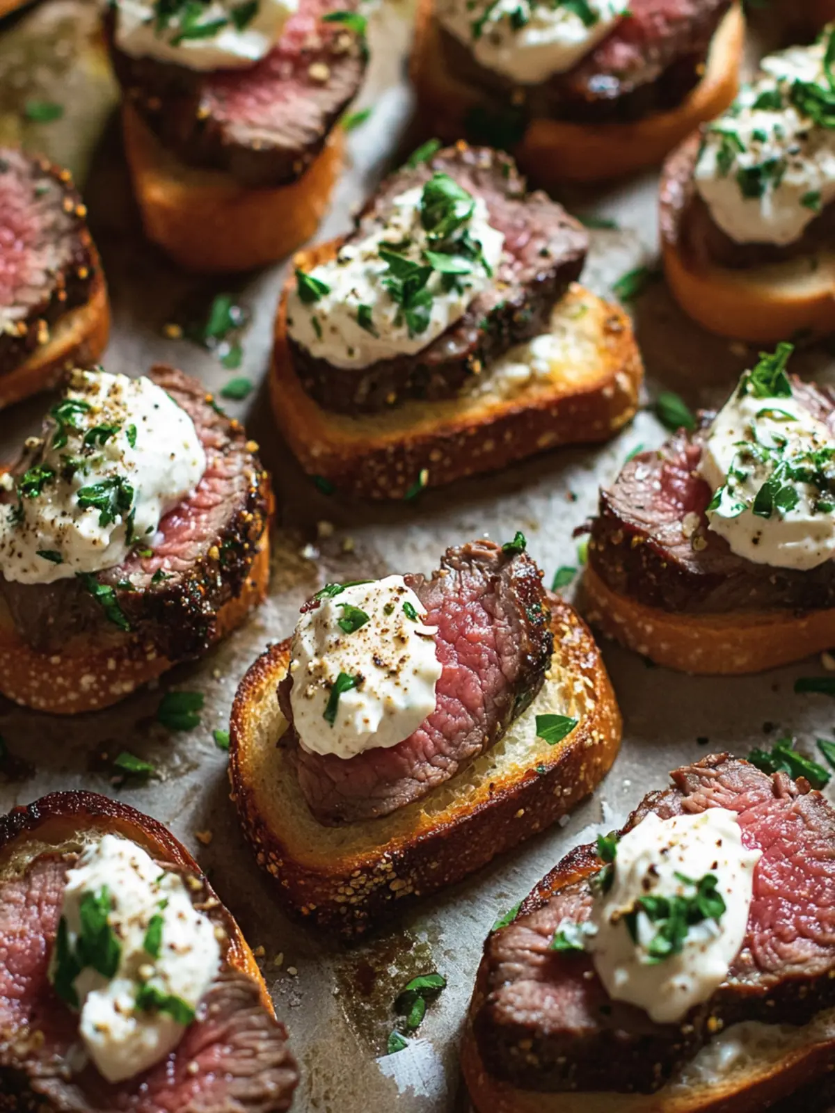 Savory Seared Beef Tenderloin Crostini with Horseradish Cream
